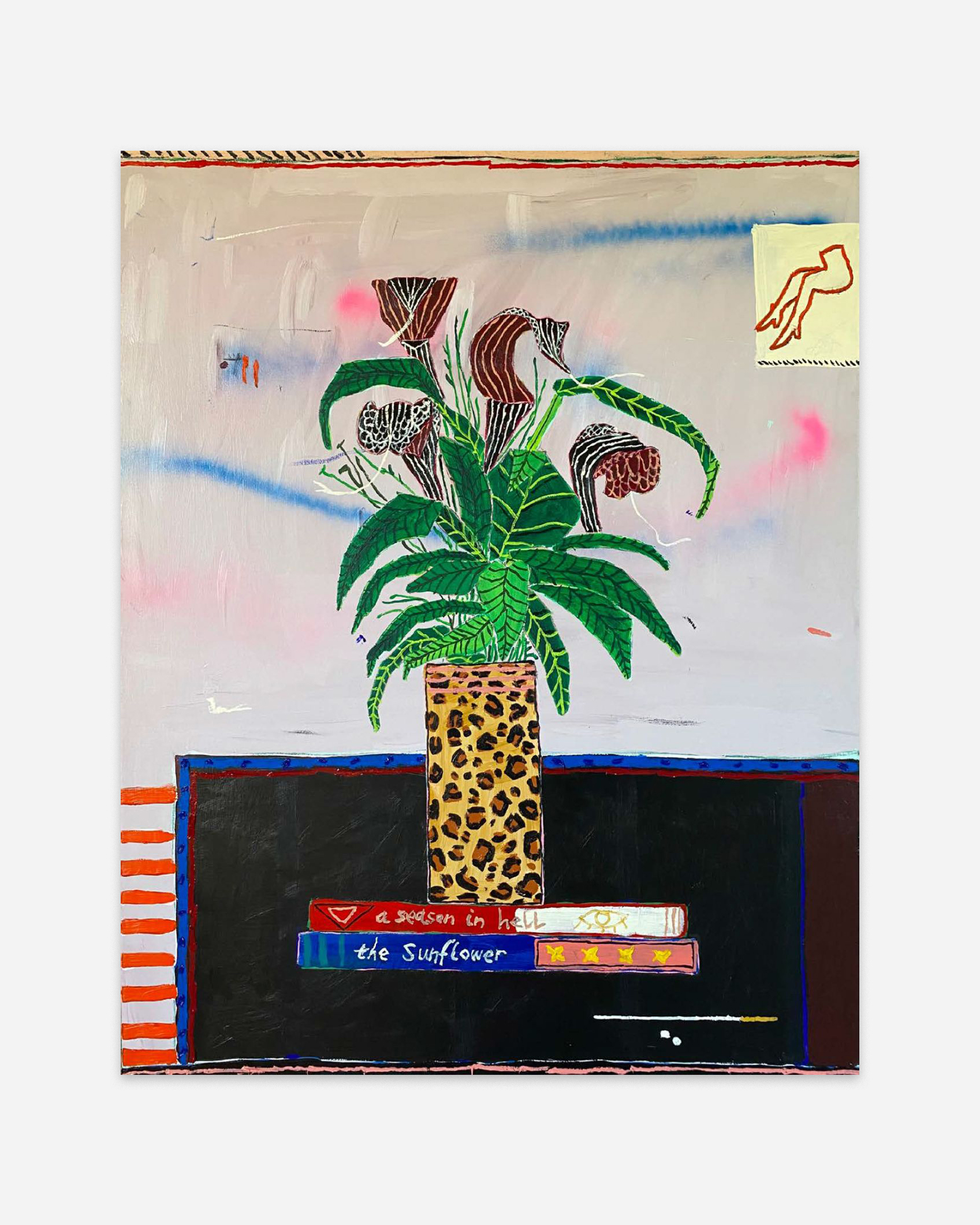 Jordy Kerwick (b. 1982) is a painter from Melbourne, Australia, currently based in France. A self-taught artist, he has developed an intuitive and improvisational approach to painting. His works feature a mix of mythical beings, animals, and everyday objects, forming fantastical narratives rooted in his imagination. These images carry a playful yet ambiguous atmosphere, creating distinctive scenes where contemporary sensibilities intersect with ancient symbolism. Kerwick employs a wide range of materials, including oil, acrylic, spray paint, oil stick, and collage. Through bold contours and vivid colors, he brings a sense of vitality and rhythm to his compositions. Ancient motifs reminiscent of Egyptian hieroglyphs are interwoven with cartoon-like imagery, reflecting influences from Abstract Expressionism, Minimalism, and Hard-edge painting. He has held solo exhibitions at major galleries such as Delphian Gallery in London and Galerie Julie Cadet in Paris, gaining international recognition.