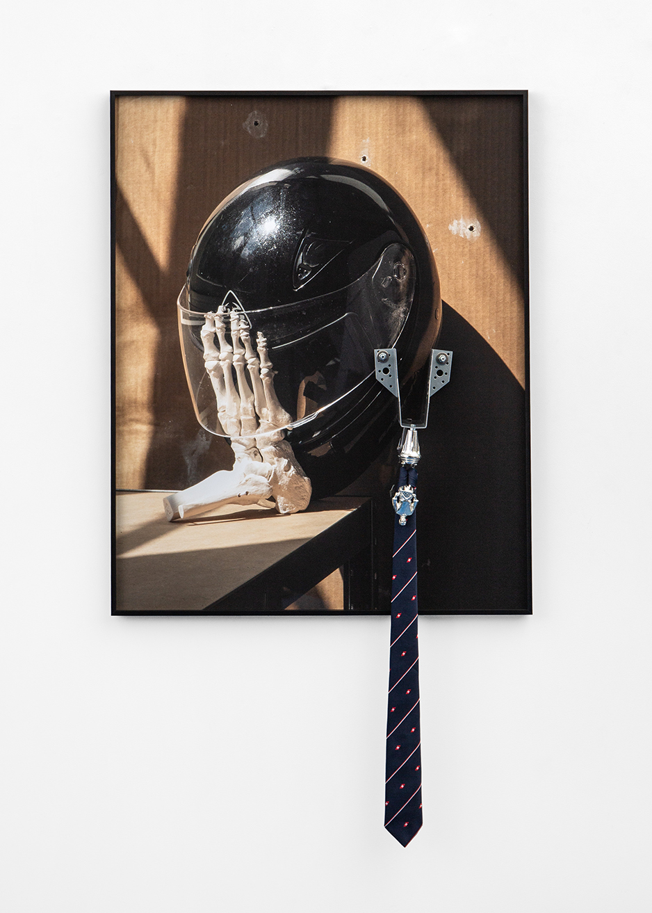 Vytautas Kumža(b. 1992, Lithuania), based in Amsterdam, uses photography as a sculptural and spatial medium to decontextualize everyday objects. Glass, metal chains, antennas, hinges, handcuffs, and strands of hair gather in hybrid compositions that turn the image into a site of formal experimentation rather than documentation. His constructed scenes act less as representations of reality than as performative dialogues between contrasting elements, negotiating tension and meaning. Through color inversions, distortions of scale and subtle visual feints, he elicits unfamiliar sensations from familiar things. Facing his imperfect assemblies, viewers are invited to reconsider how seeing and believing operate today.
