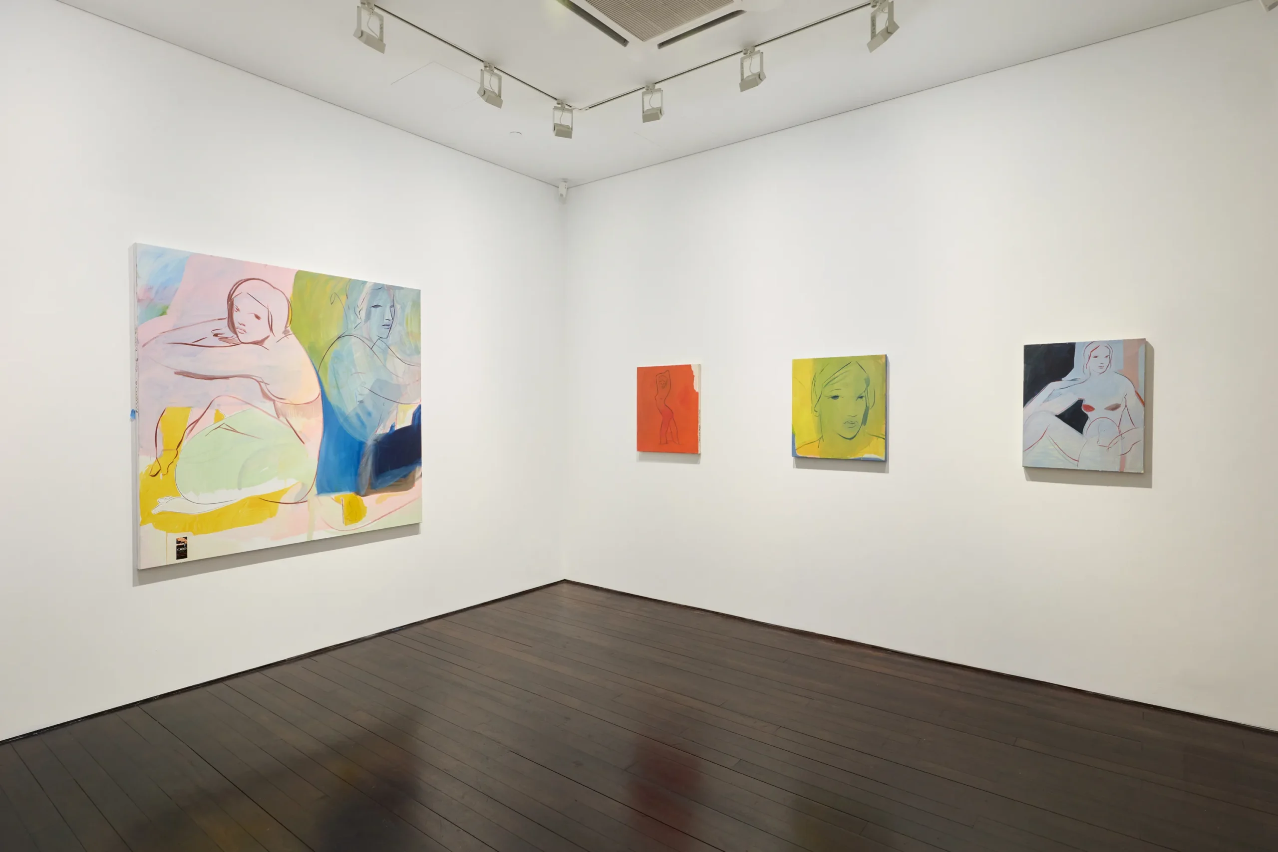 McGurn grew up in Glasgow in the 1980s and 90s, when the television was never off. “The TV was company,” she says. “It was just there, always on, like the fire.” That constant hum, that low-level companionship, has soaked into her work. Her paintings behave like screens: things happen across them. The figures loop, fade, reappear; the colour drifts in and out.