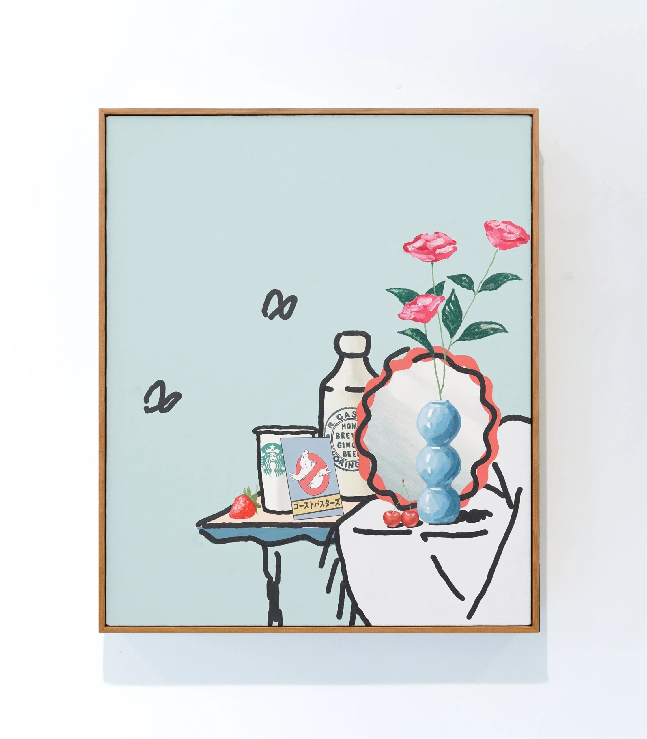 Wataru Ozu, Still Life with Ghost and Mirror, 2025, Oil on canvas, 72.7 x 60.6cm. Courtesy of the Artist and AISHO.