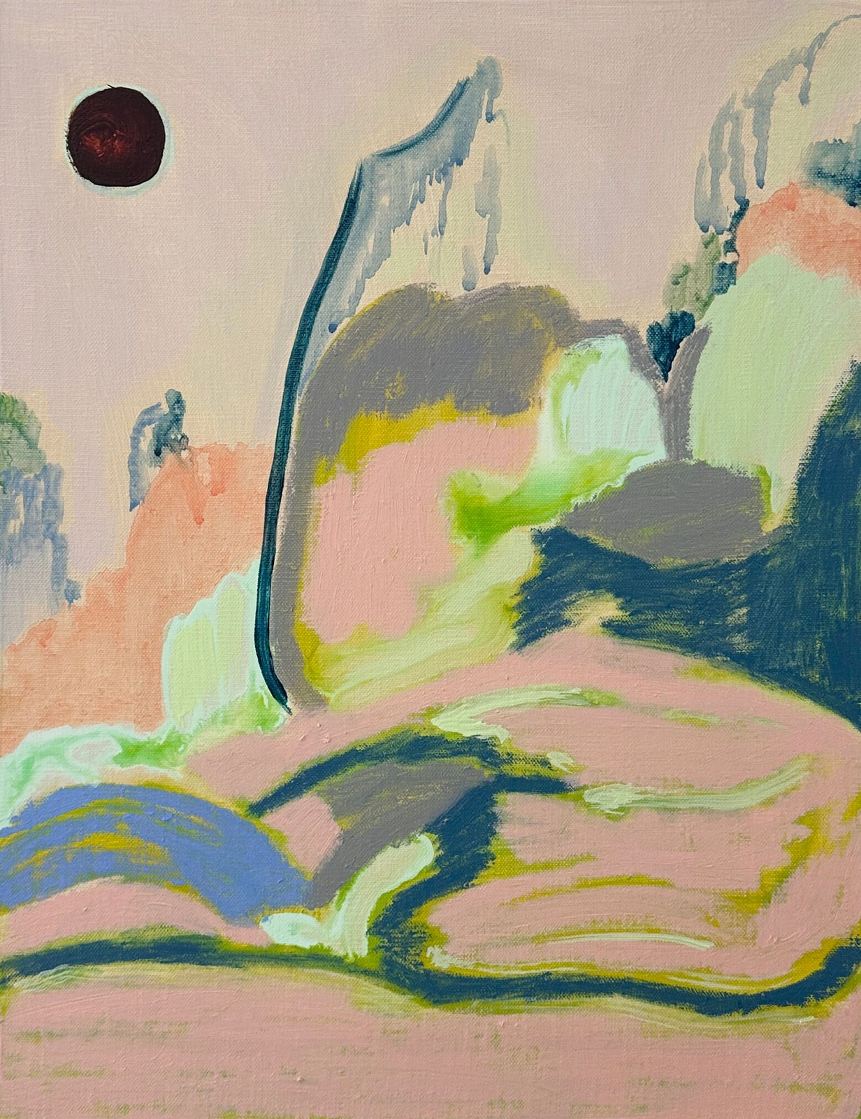 The exhibition presents a new series of paintings by Sohyun Ban. In her works, she examines how an image comes into being and how our perception shifts depending on the distance from which we view it. From afar, her paintings appear as calm, poetic landscapes. As viewers move closer, spontaneous brushstrokes, rough lines, and seemingly unordered traces emerge. The same image thus unfolds as two entirely different scenes.