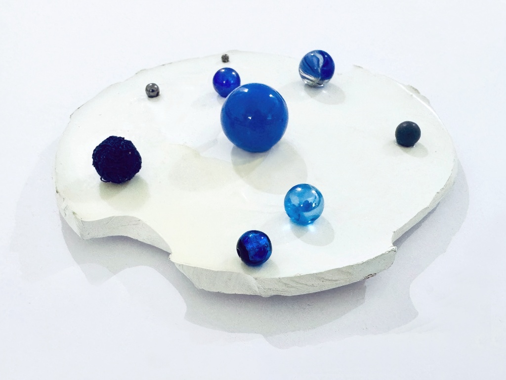Satoshi Hirose, Untitled (Into the deep sleep), 2024, Marble, wool, plastic, iron ball, paint, 3.2 x 15.5 x 15.5 cm. Courtesy of the Artist and Tomio Koyama Gallery.
