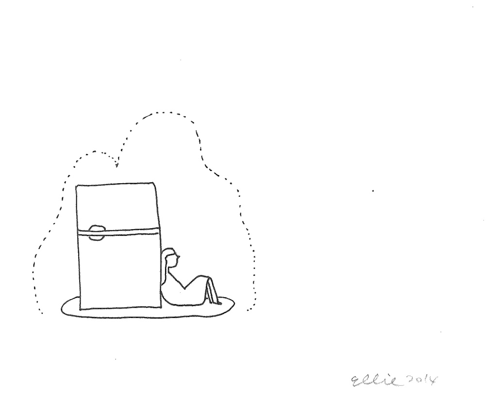 Ellie Omiya, Refrigerator and Woman, 2014, Ink on paper, 11.0 x 13.1 cm. Courtesy of the Artist and Tomio Koyama Gallery.
