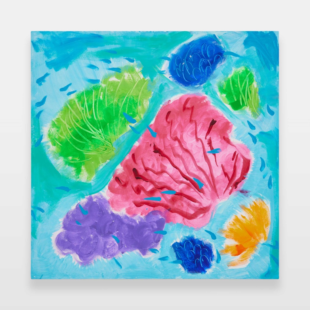 Ellie Omiya, Ⅰ Coral Reef and Blue Fish I, 2023, Acrylic on canvas, 80.3 x 80.3 cm. Courtesy of the Artist and Tomio Koyama Gallery.