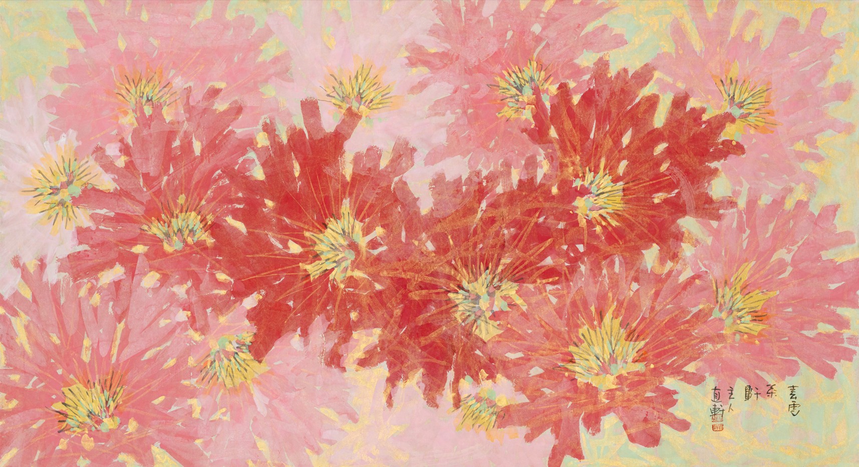 Heo Dal-jae, peony, 2021-2023, Ink and color on Hanji, gold leaf, 65 x 119 cm. Courtesy of the Artist and Jeonnam Museum of Art.