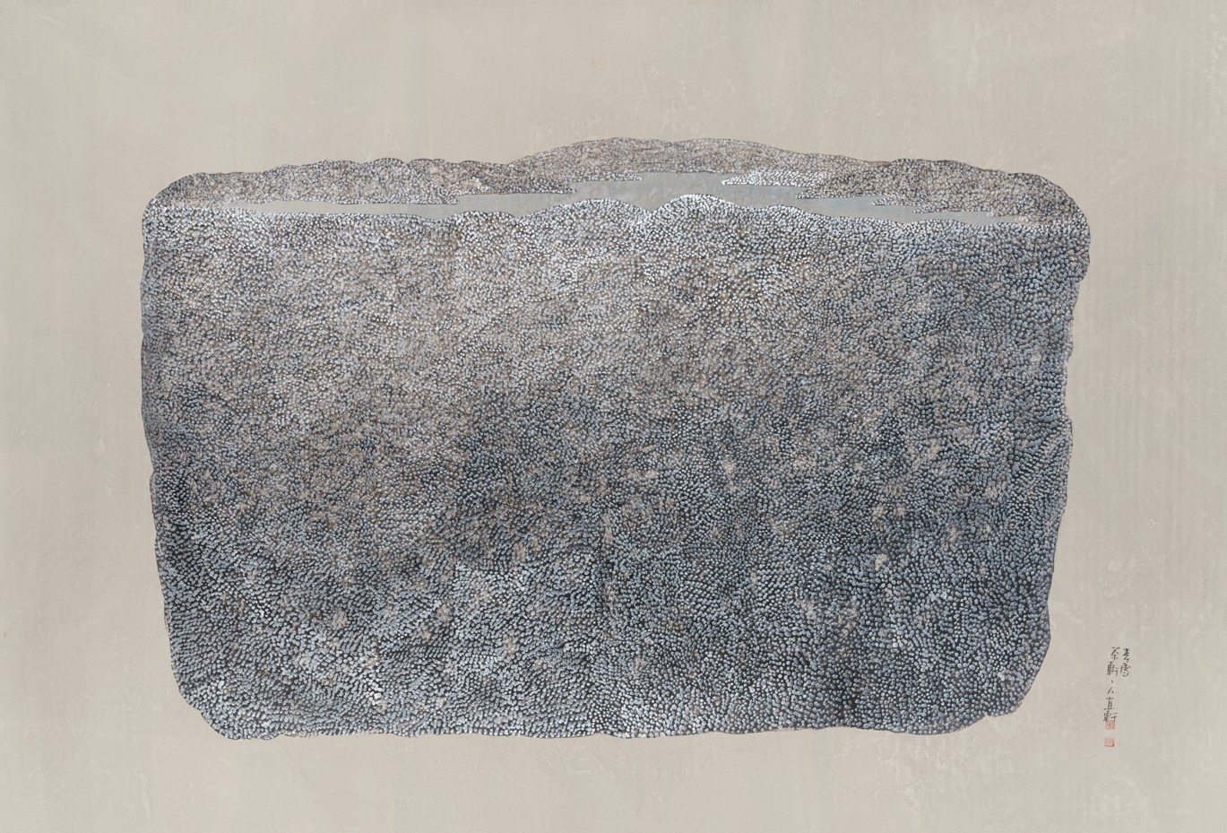 Heo Dal-jae, rock, 2020-2025, Ink and color on Hanji, gold leaf, 143 x 210 cm. Courtesy of the Artist and Jeonnam Museum of Art.