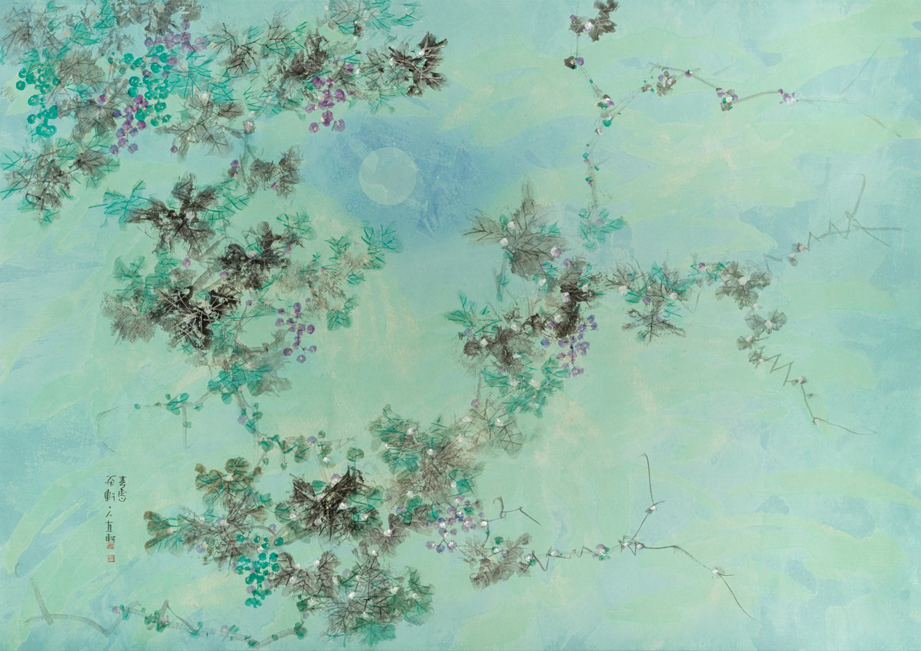 Heo Dal-jae, grape, 2025, Ink and color on Hanji, gold leaf, 148 x 210 cm. Courtesy of the Artist and Jeonnam Museum of Art.