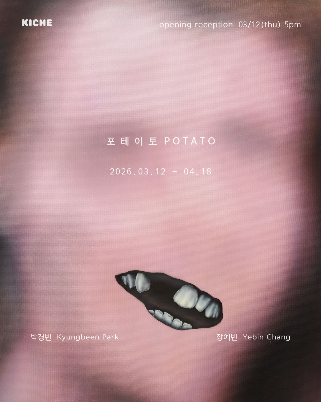 KICHE presents Potato, a two-person exhibition by Park Kyungbeen and Chang Yebin. The exhibition takes its title from the meme “potato quality,” a phrase used for images so blurred or pixelated they seem barely legible. In a visual culture where resolution is often mistaken for truth, Potato lingers instead with the degraded image. Rather than correcting or clarifying what appears indistinct, Park and Jang work within its slippages, widening the gaps that precision attempts to close.
