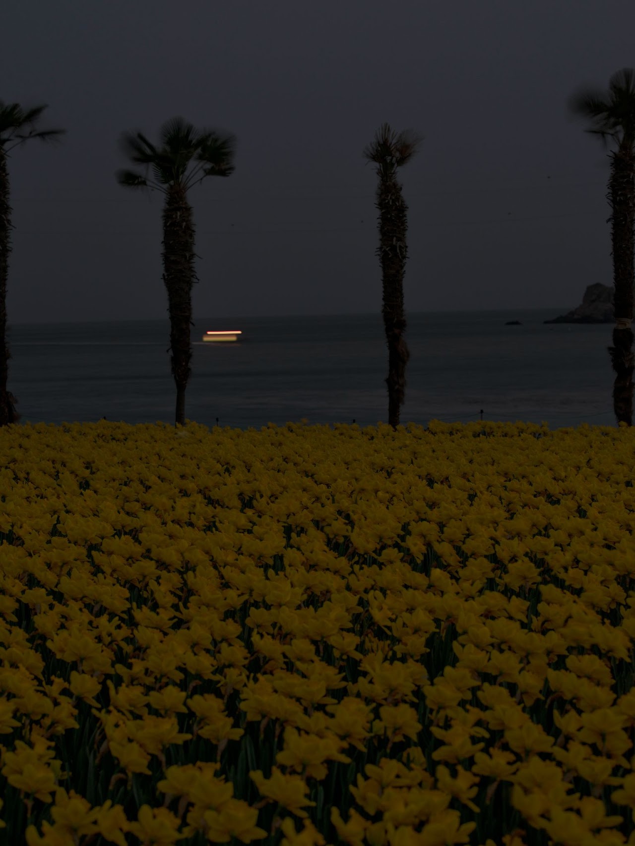 작은 틈과 빛을 떠올리며 카메라 뷰파인더에 눈을 대고 있는 사람의 모습을 상상할 수 있다. 빛과 뗄 수 없는 사진은 전명은의 작업에 다다라, 사진이 품고 있는 빛으로 드러난다. <무제(금굴)>는 동굴의 안쪽에서 바깥을 향해 있다. 안의 크기를 상상할 수 없는 입구를 지나 거대한 내부로 들어가며 작가는 앞으로, 앞으로, 빛을 등지고 어둠으로 향했다. 촬영을 마치고 다시 돌아가려고 했을 때, 어둠에서 빛으로, 작가는 이것을 찍으러 온 것임을 깨달았다고 했다. 어느덧 해가 지고 너른 수선화밭을 마주한 채 멀리 빛이 보인다(<오래된 집>). 분명 인화된 사진임을 알고도, 붉게 전진하는 빛에서 눈을 뗄 수 없다. 횡으로 이동하는 빛은 어둑해진 세상에서 혼자만의 신호를 보내고 있다. 작가의 사진에서 드러나는 시간은 빛과 어두움의 세계를 촉각적으로 전환한다. 이 맞은편, 무언가 공중에 떠 있는 듯하다(<배클렘트 #39>). 바다생물 나무조각을 촬영한 것이라는 작가의 말에서 다시금 동굴의 안쪽에서 바라보는 빛과 어두워진 바다에 지나가는 배, 심해어를 대신한 물고기 조각까지, 어둠 속에서 빛나는 것들에게 보내는 작가의 시선을 떠올린다.